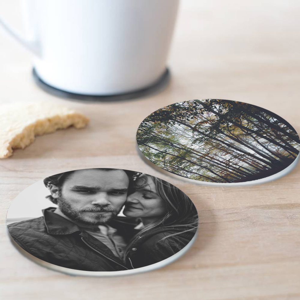 Print your digital pictures, Facebook or Instagram photos on a set of top quality sandstone coasters. For each set you can choose to have two different images (one per coaster), or the same image printed on all two coasters for a matching set.