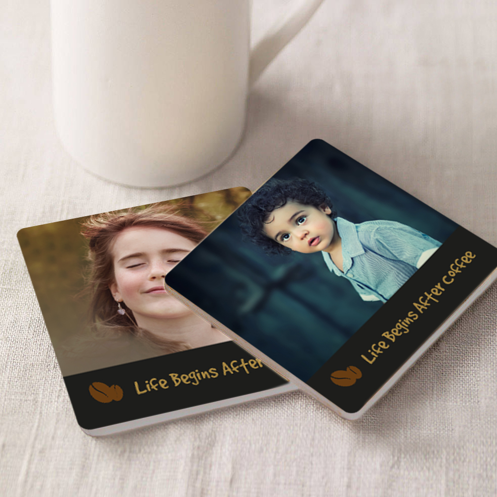 Print your digital pictures, Facebook or Instagram photos on a set of top quality sandstone coasters. For each set you can choose to have two different images (one per coaster), or the same image printed on both coasters for a matching pair.